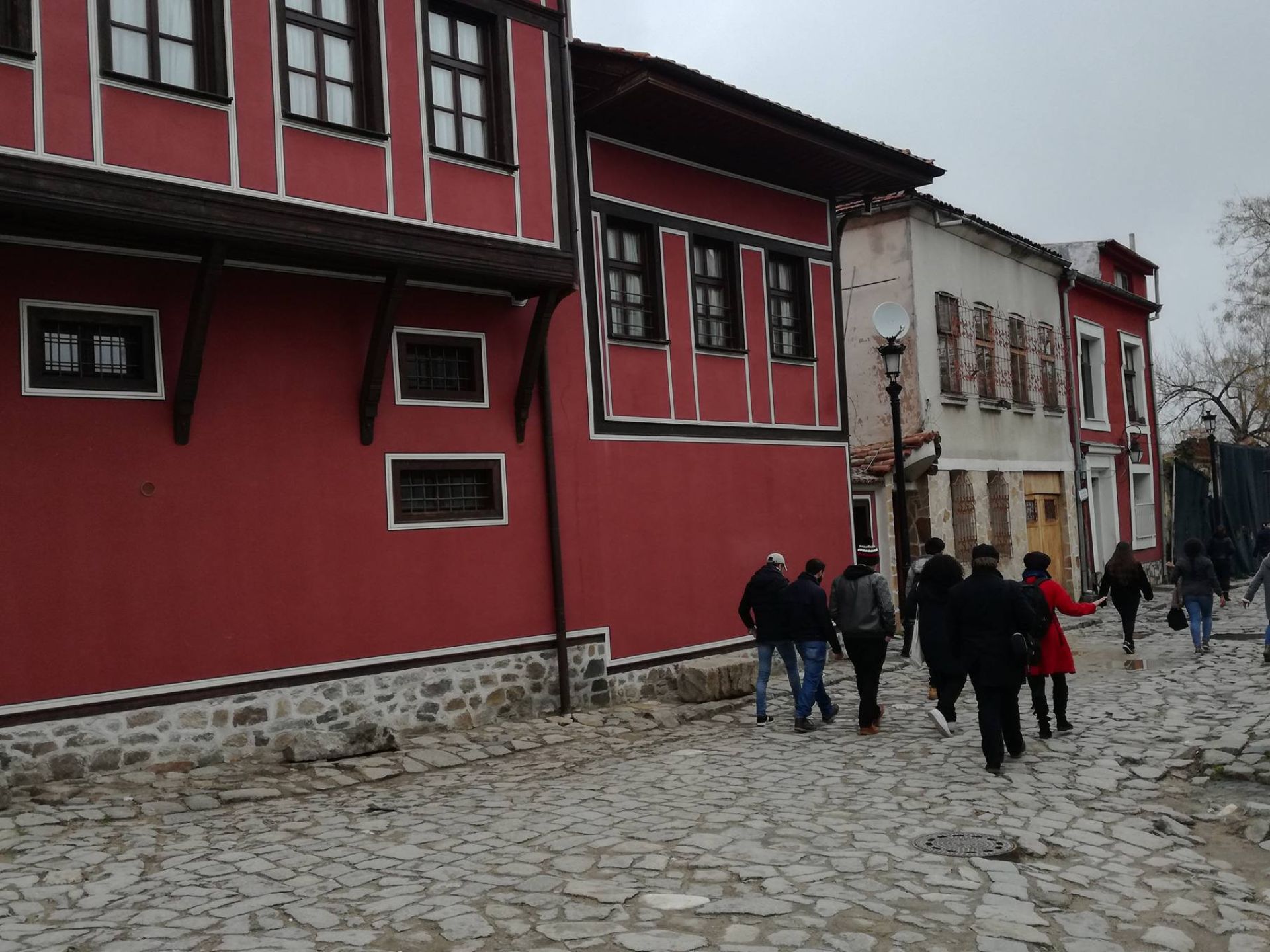 Pas loin de la mosquée se trouve le centre culturel juif. C’est un vieux bâtiment du 19ème siècle avec des bibliothèques et des salles communautaires, où les citoyens de Plovdiv peuvent assister à des cours de musique par exemple, il y a aussi des cours d’hébreu et de ladino. Ani est l’une des librairie, qui est un bougran, de la religion catholique et très passionné par la culture juive, elle et son collègue ont expliqué les activités du centre juif et préparé pour nous le fil rouge et blanc pour faire la «martenizi », décoration bulgare pour le printemps. Nous avons également goûté le doux turc Lokoum et lors de la présentation appris, que tous les Juifs bulgares de 50.000 ont été revendus par le public bulgare, l’Eglise et le gouvernement des déportations pendant la seconde guerre mondiale.