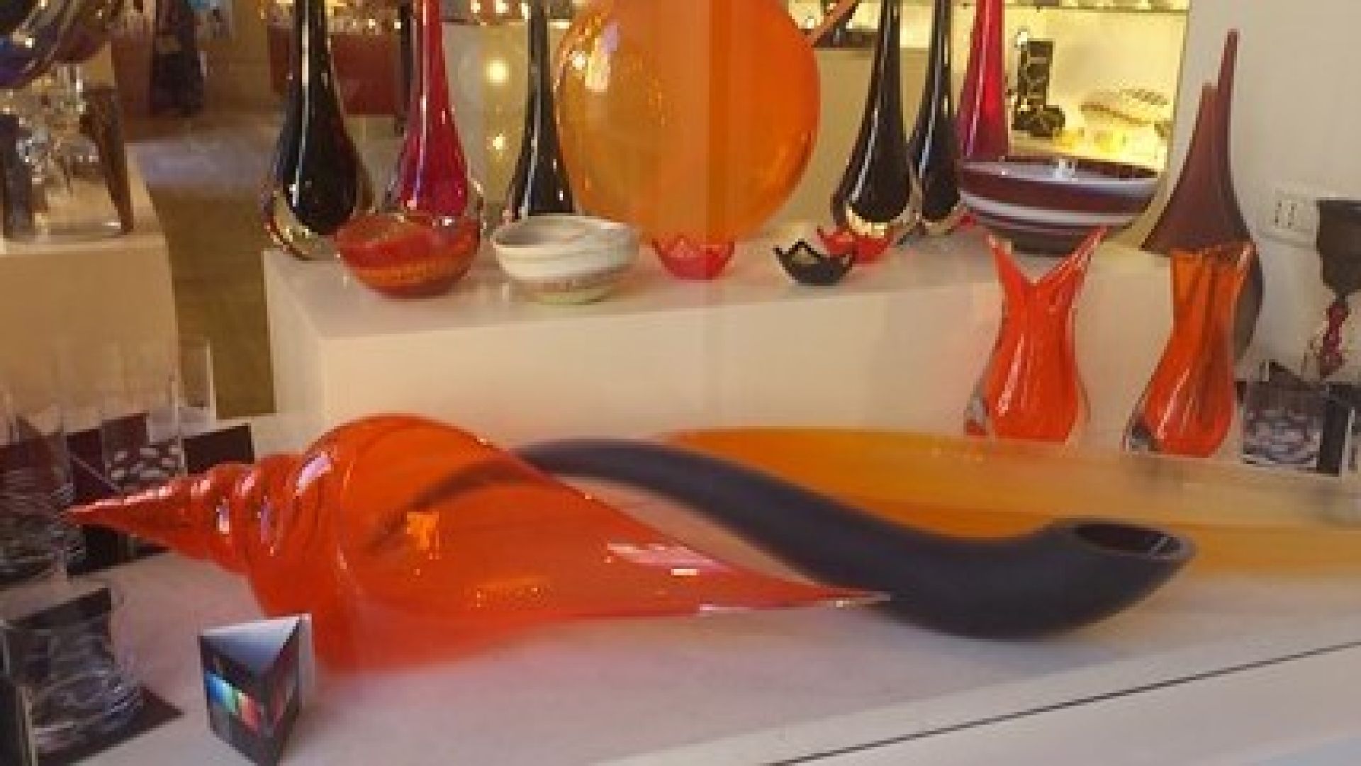 At the square where Tony’s gallery is located you can hear noisy machines. In a shop with a low ceiling Alvise Deste is sitting at the table and painting small glossy glass figures with many colors. The figures are similar to Easter Eggs. When I approach he interrupts his work to speak with me.